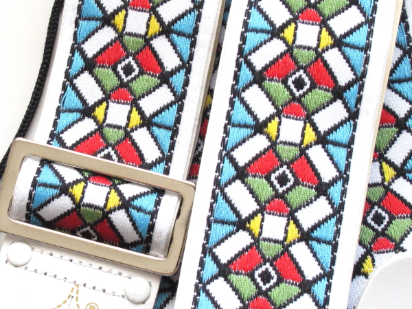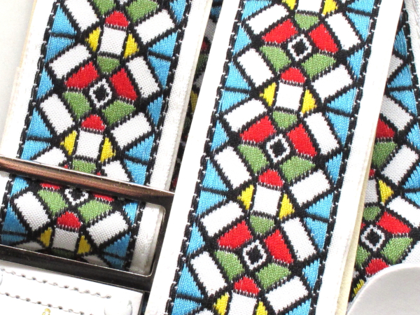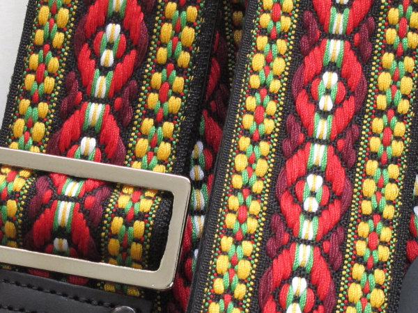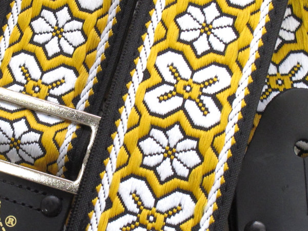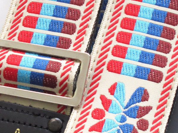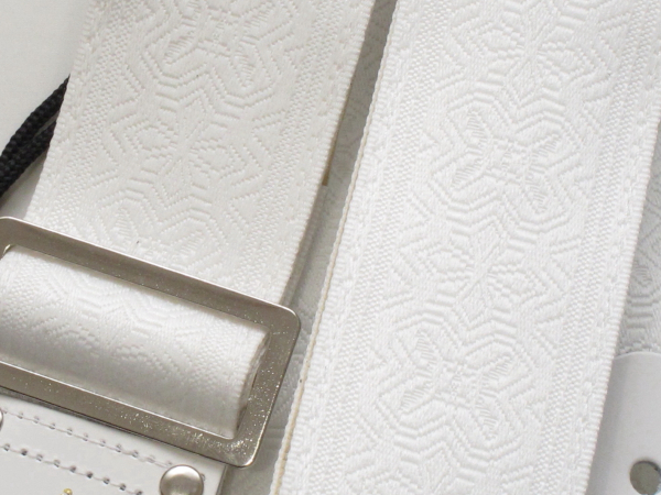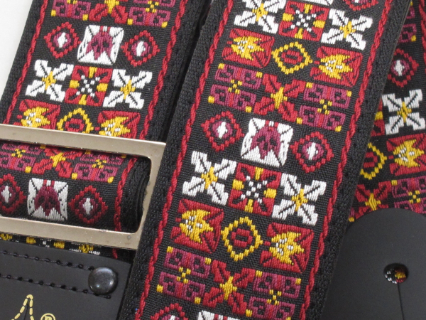 多くの偉大なギタリストに使用された「エースストラップ」のリイシューモデル。表には織柄の生地、裏にはビニールレザーを採用しています。